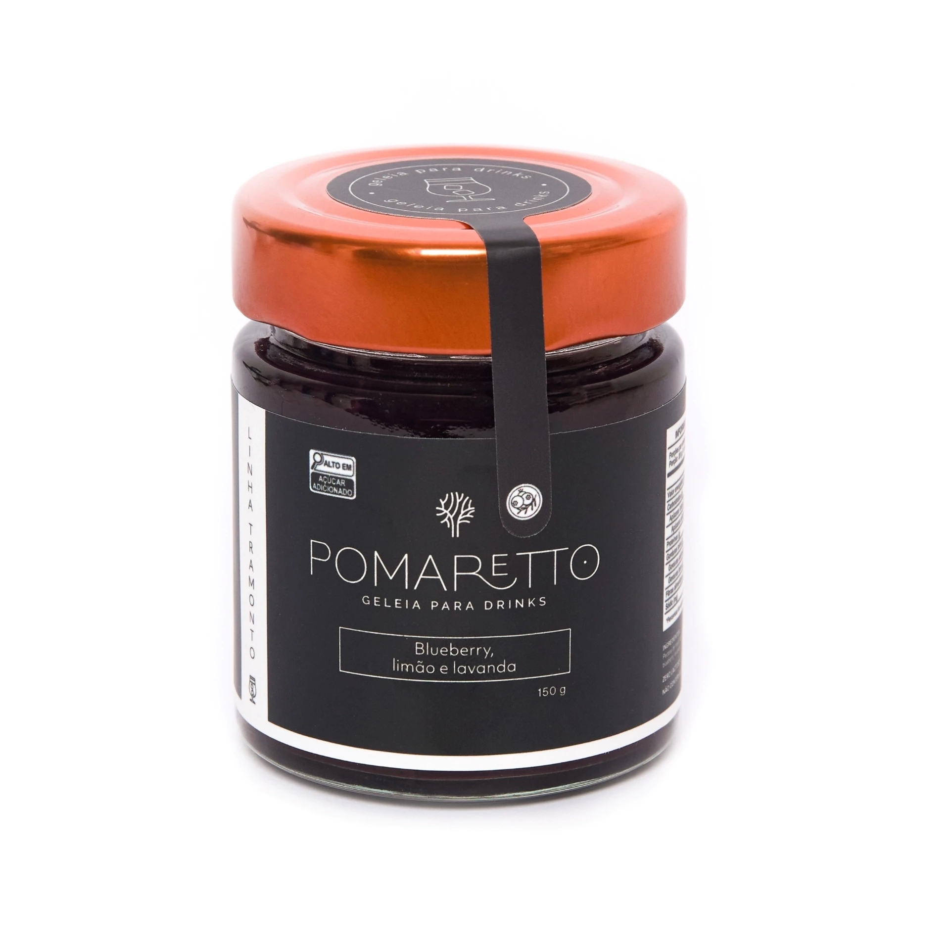 Ingredientes: blueberry, suco de limão, açúcar orgânico demerara, lavanda e pectina de maçã.
